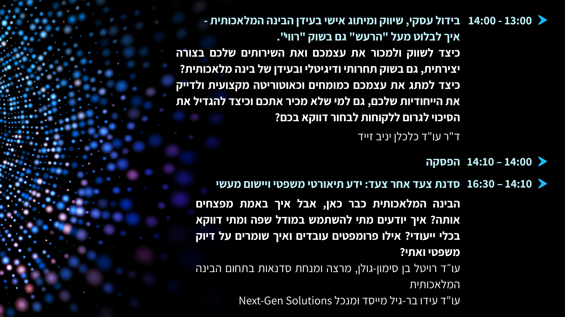 ריכוז אקדמי: עו״ד רויטל בן סימון-גולן, מרצה ומנחת סדנאות בתחום הבינה המלאכותית