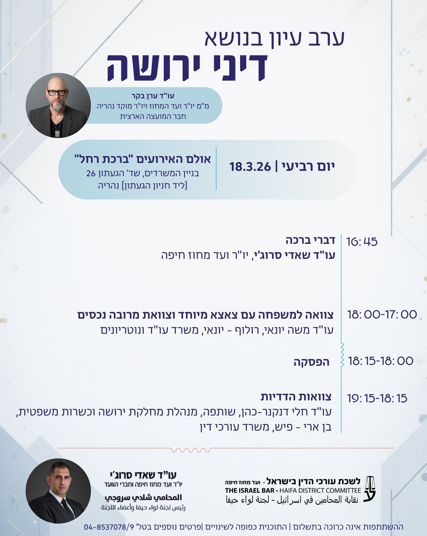 18:00-17:00 | צוואה למשפחה עם צאצא מיוחד וצוואת מרובה נכסים