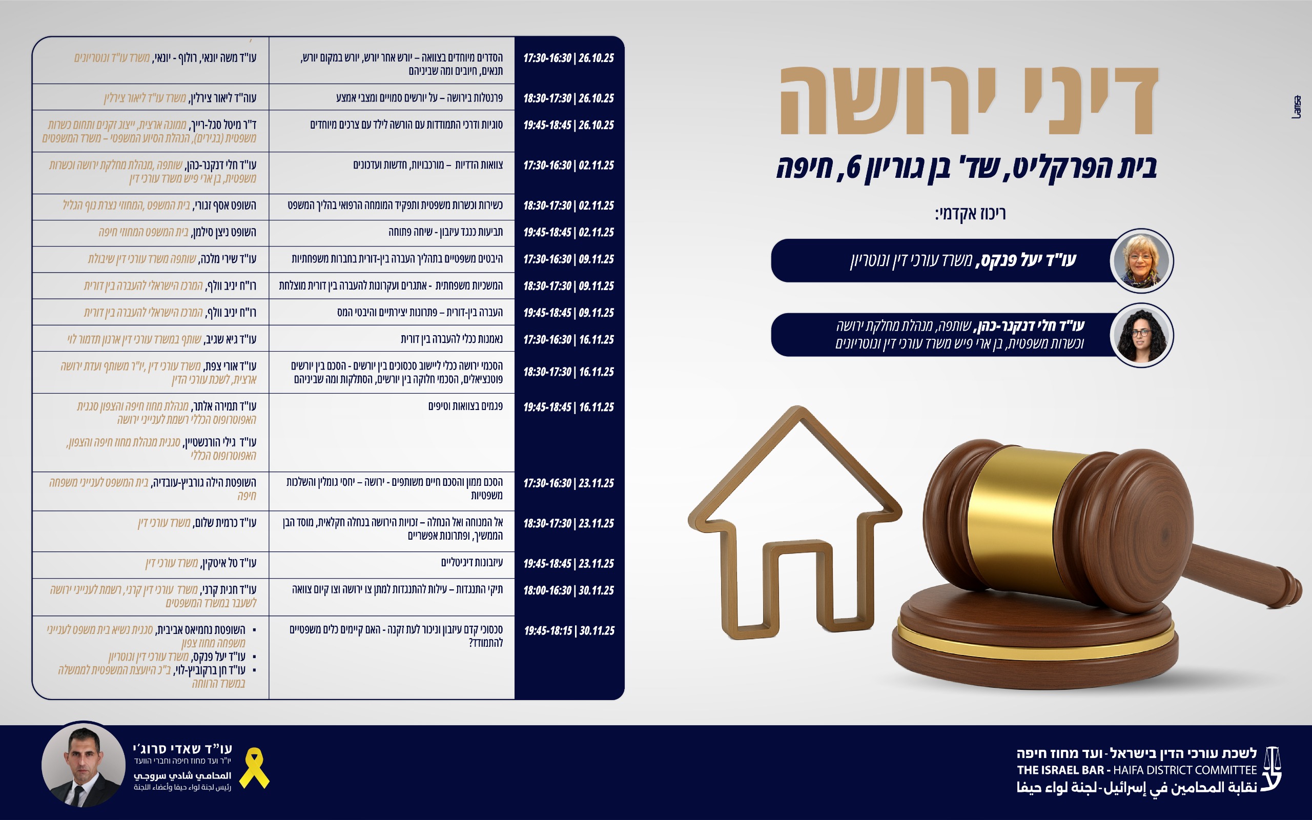 השופטת הילה גורביץ-עובדיה, בית המשפט לענייני משפחה חיפה | הסכם ממון והסכם חיים משותפים – ירושה – יחסי גומלין והשלכות משפטיות | 23.11.25