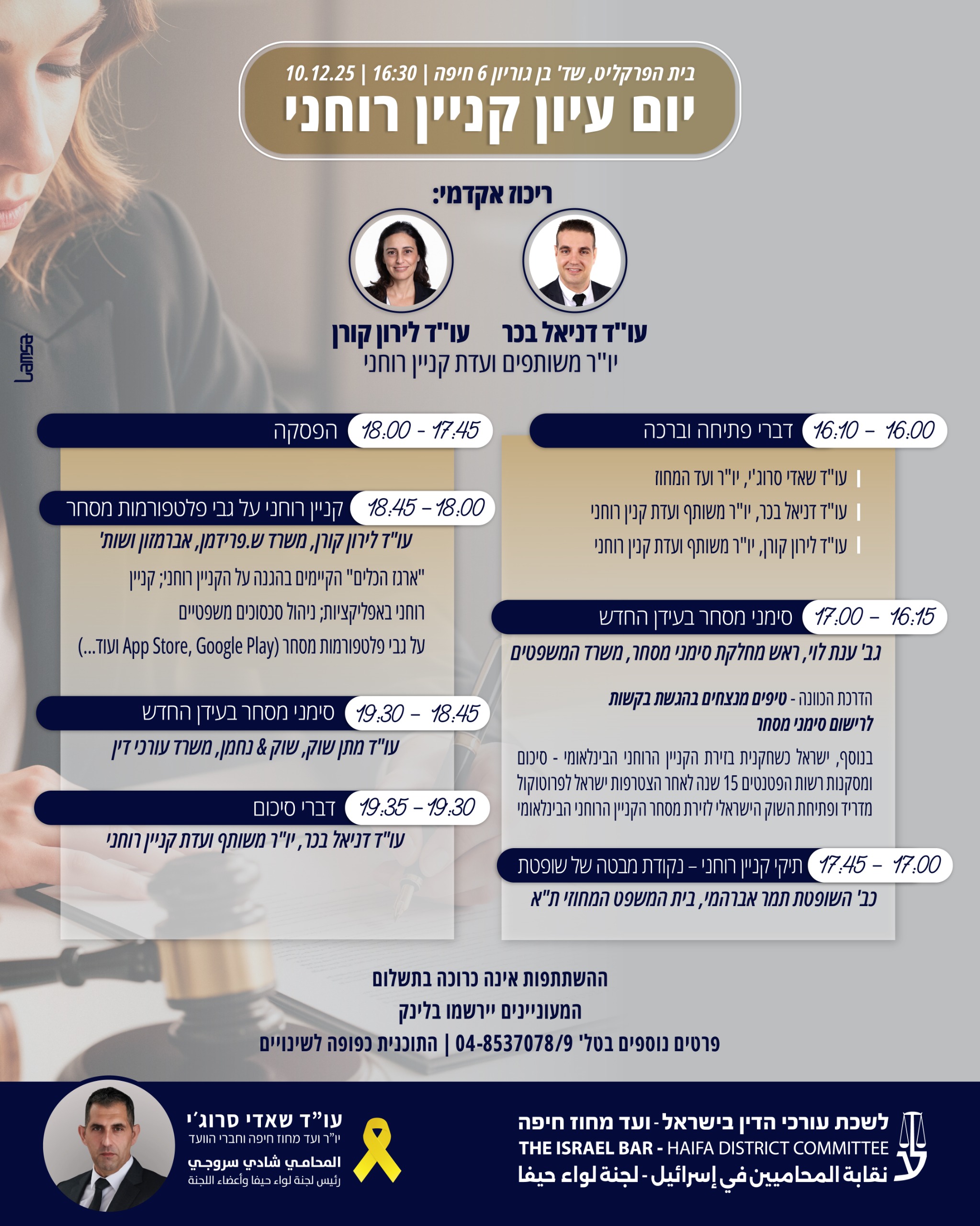 17:45 – 18:00 הרצאה עו"ד לירון קורן