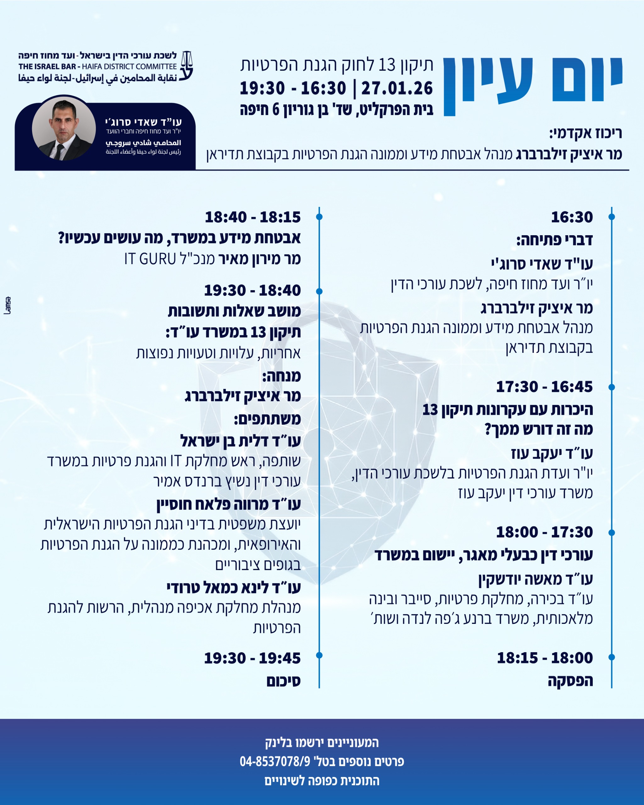 ריכוז אקדמי: מר איציק זילברברג – מנהל אבטחת מידע וממונה הגנת הפרטיות בקבוצת תדיראן