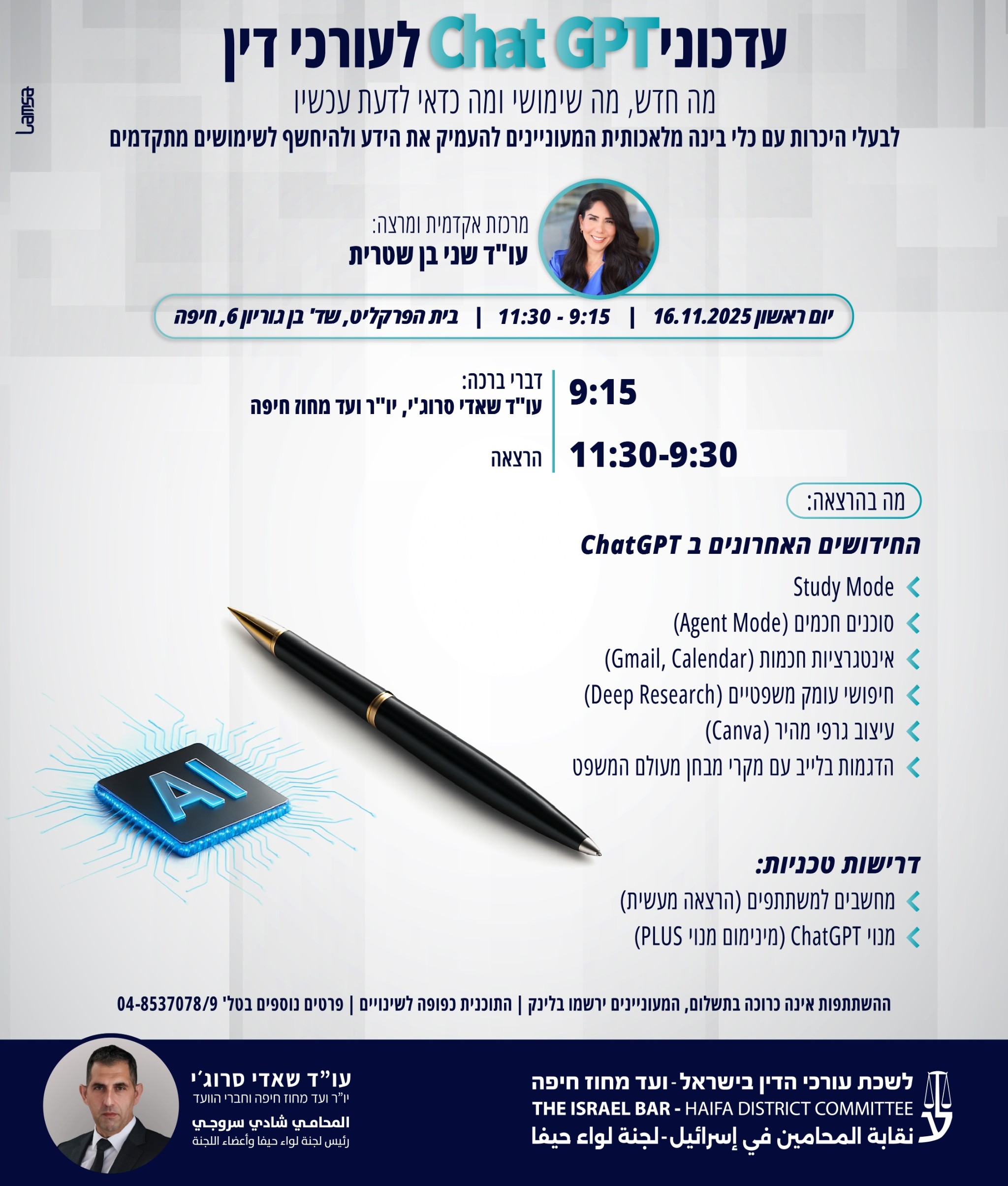 16.11.25 יום א' בית הפרקליט, שד' בן גוריון 6, חיפה
